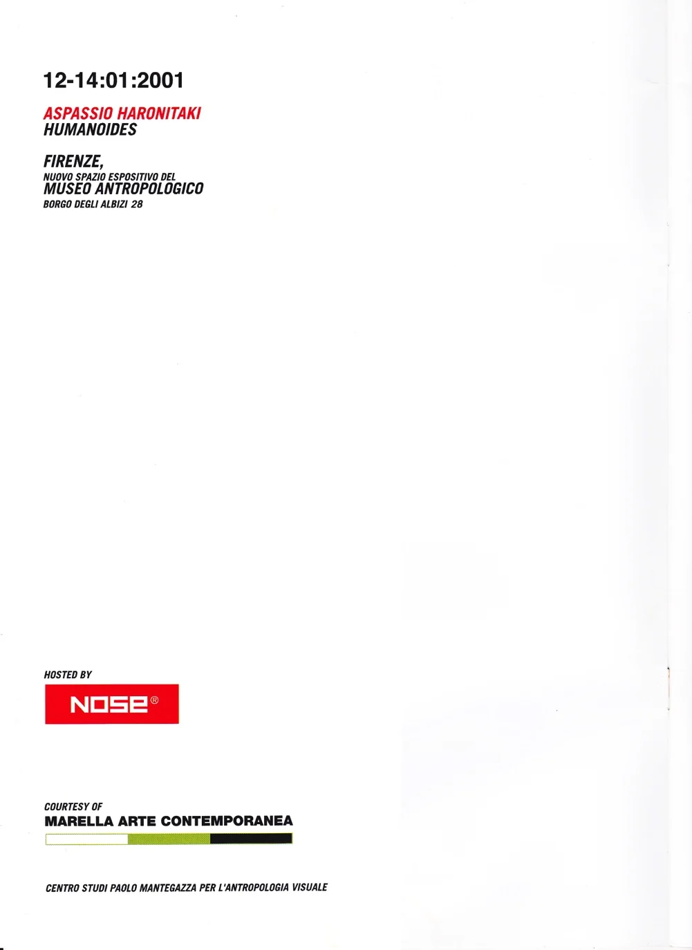 ASPASSIO HARONITAKI: HUMANOIDS, 2001. Museo Antropologico, Florence. Curated by Francesco Galluzzi and Valeria Bruni.